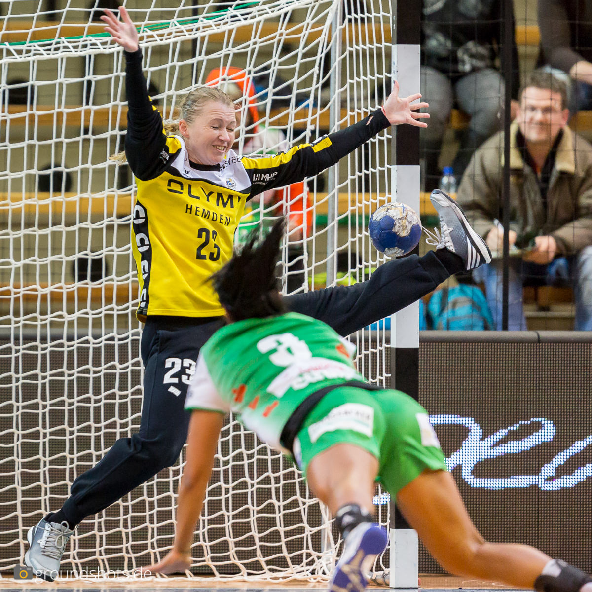 Nach der Halbzeitpause rührten die Gäste in der Abwehr den sprichwörtlichen Beton an. Es gab kein Durchkommen mehr für die Frisch Auf Ladies. Bietigheim nutzte die daraus entstehenden Tempogegenstöße eiskalt und schneller als alle gucken konnten stand es 14:20. Während viele andere Bietigheimer Gegner dann in der Folge auseinander brachen und durch die mit viel Geld aus bügelfreien Hemden gefütterte Startruppe regelrecht abgeschossen wurden, gaben sich die Frisch Auf Frauen nicht auf: vier Minuten vor Spielende stand es 23:26.