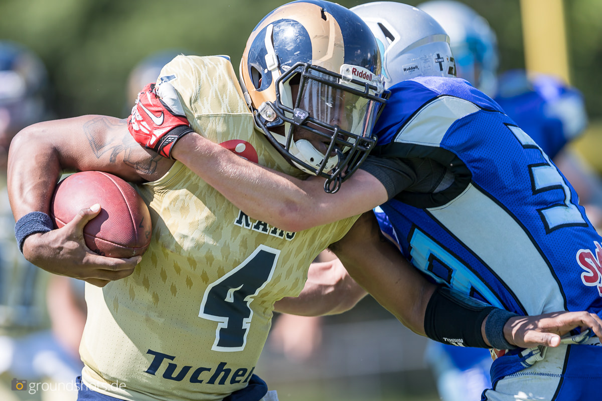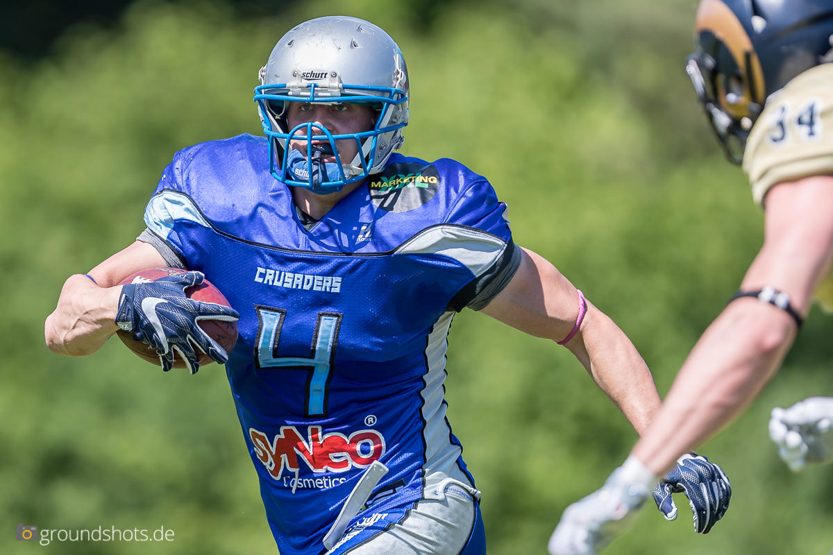 Einen klasse Footballnachmittag erlebten die Zuschauer bei Sonnenbrandwetter im Waldstadion Albershausen. Und sportlich erfolgreich (also für die Gastgeber) war er auch noch: die Crusaders schlagen die Rams aus Nürnberg mit 35:28!