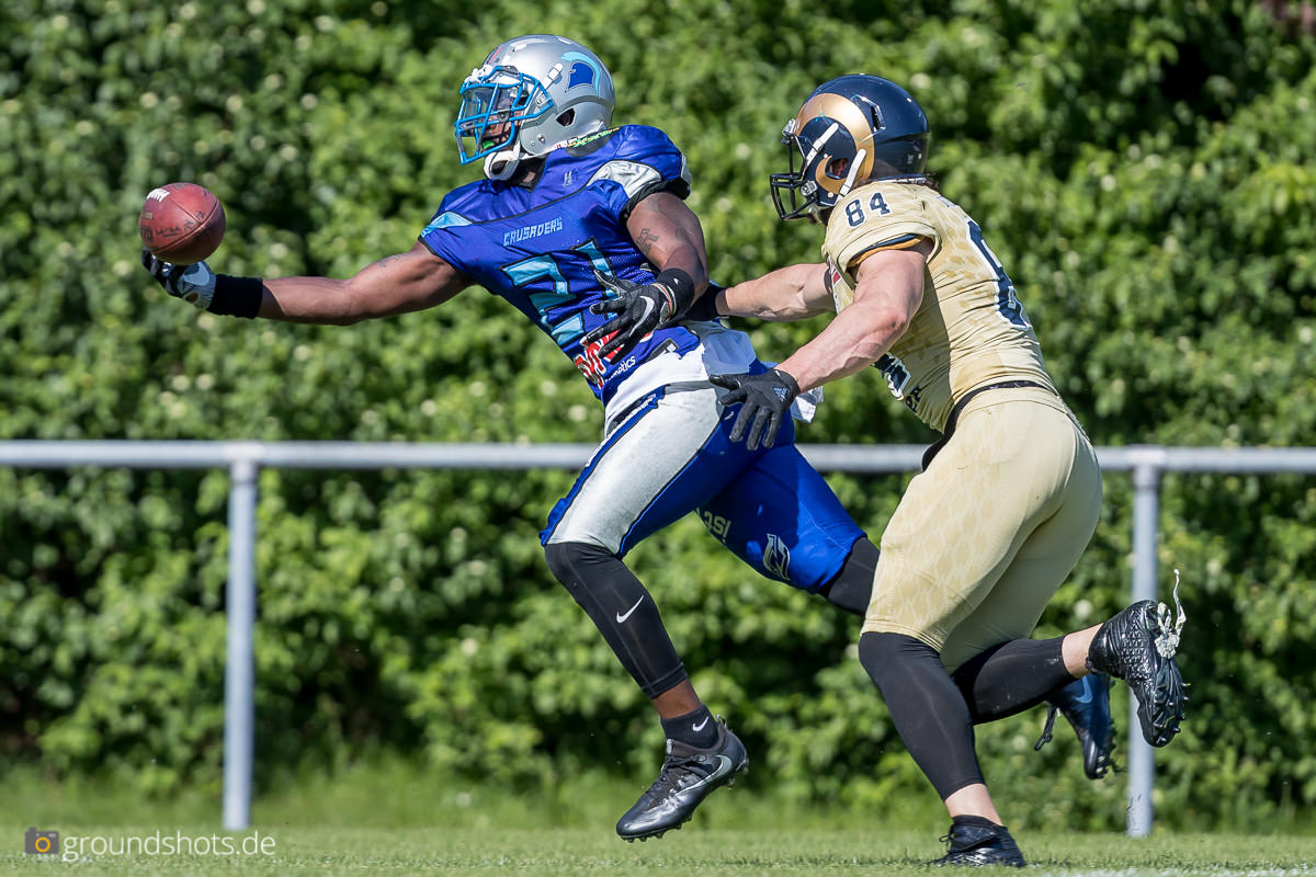 Im folgenden Drive kurz vor Spielende kassierten die Nürnberg Rams dann zwei persönliche Strafen auf einmal – vier Versuche für 40 Yards waren nicht mehr zu schaffen und die Crusaders knieten – wieder im Ballbesitz – ab.