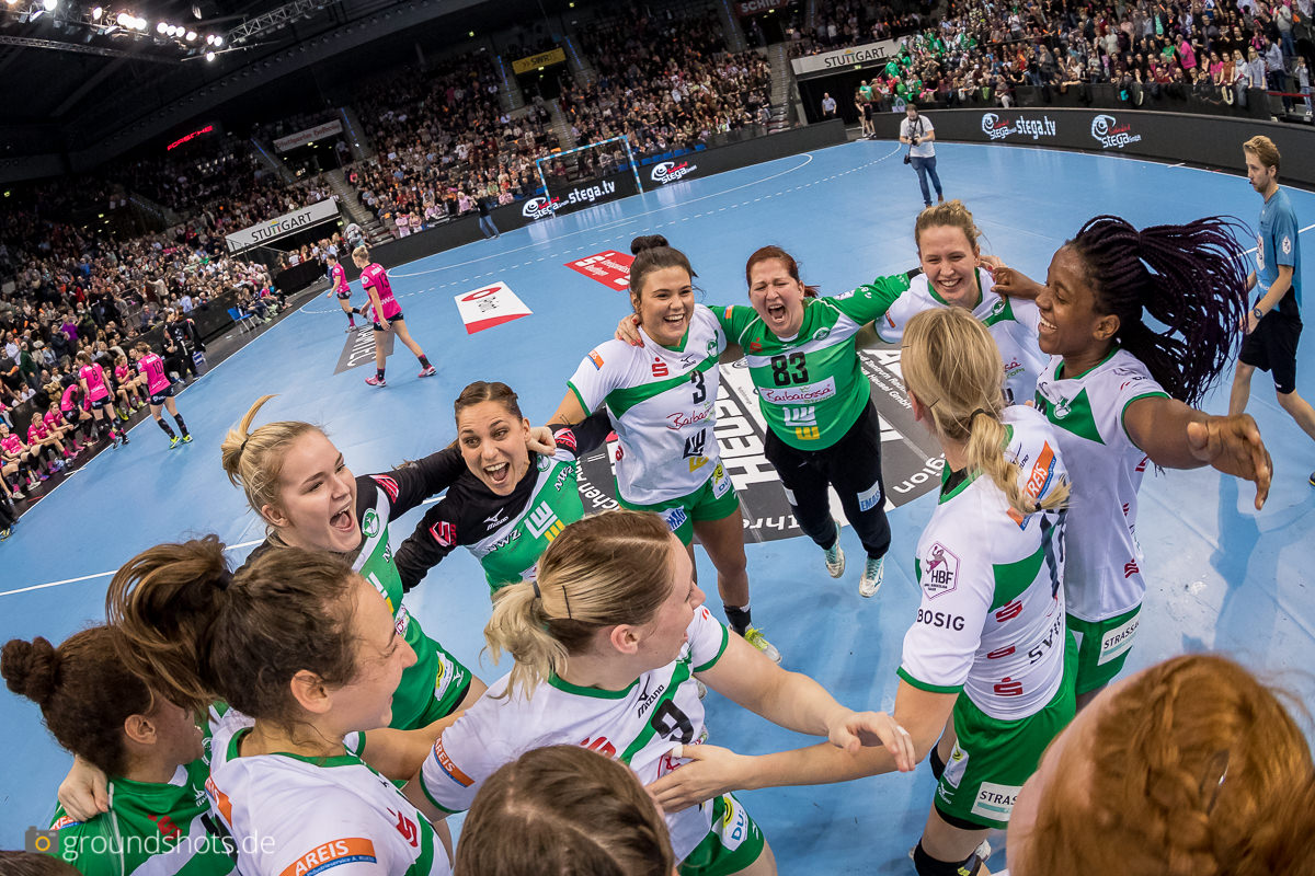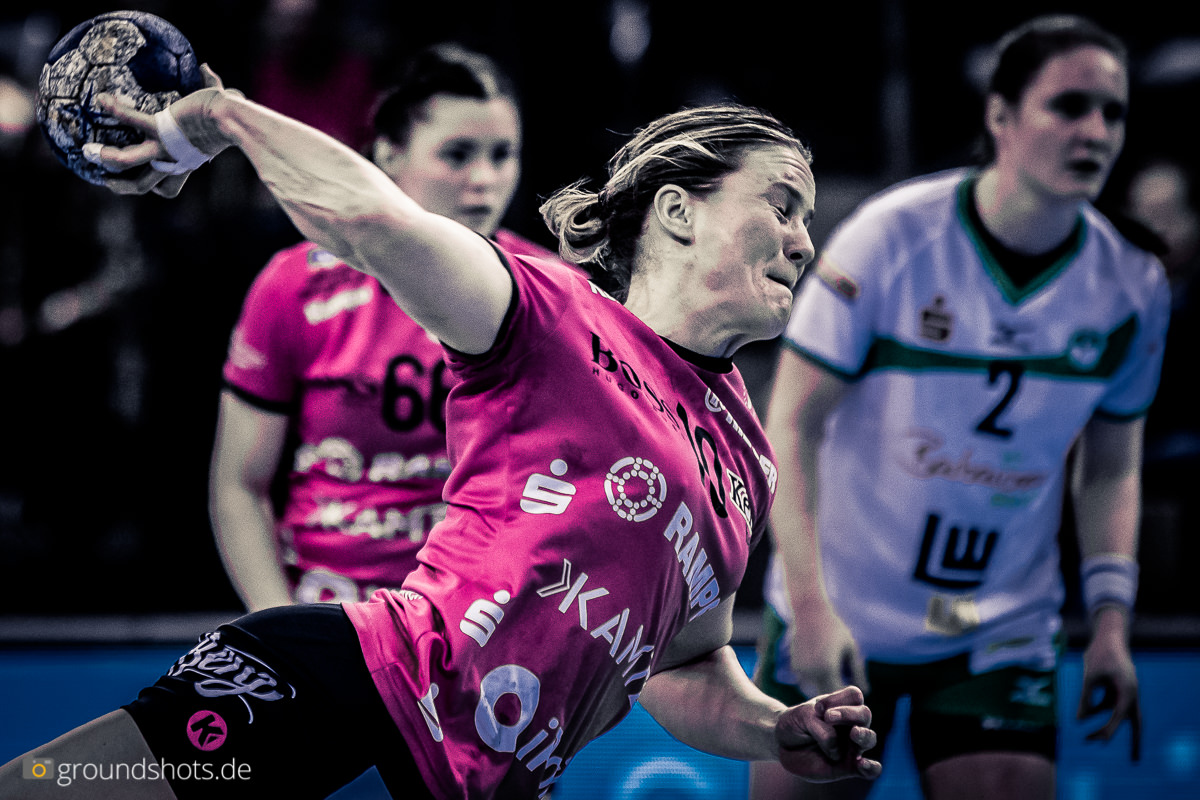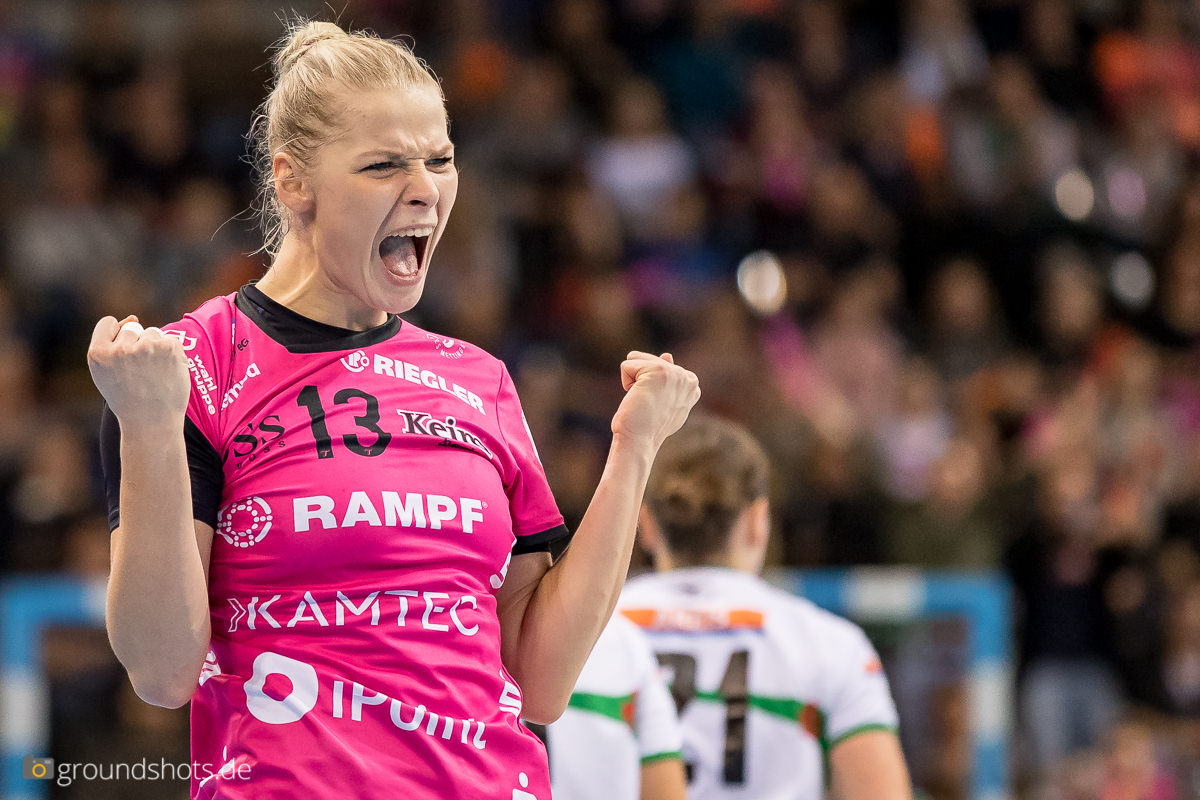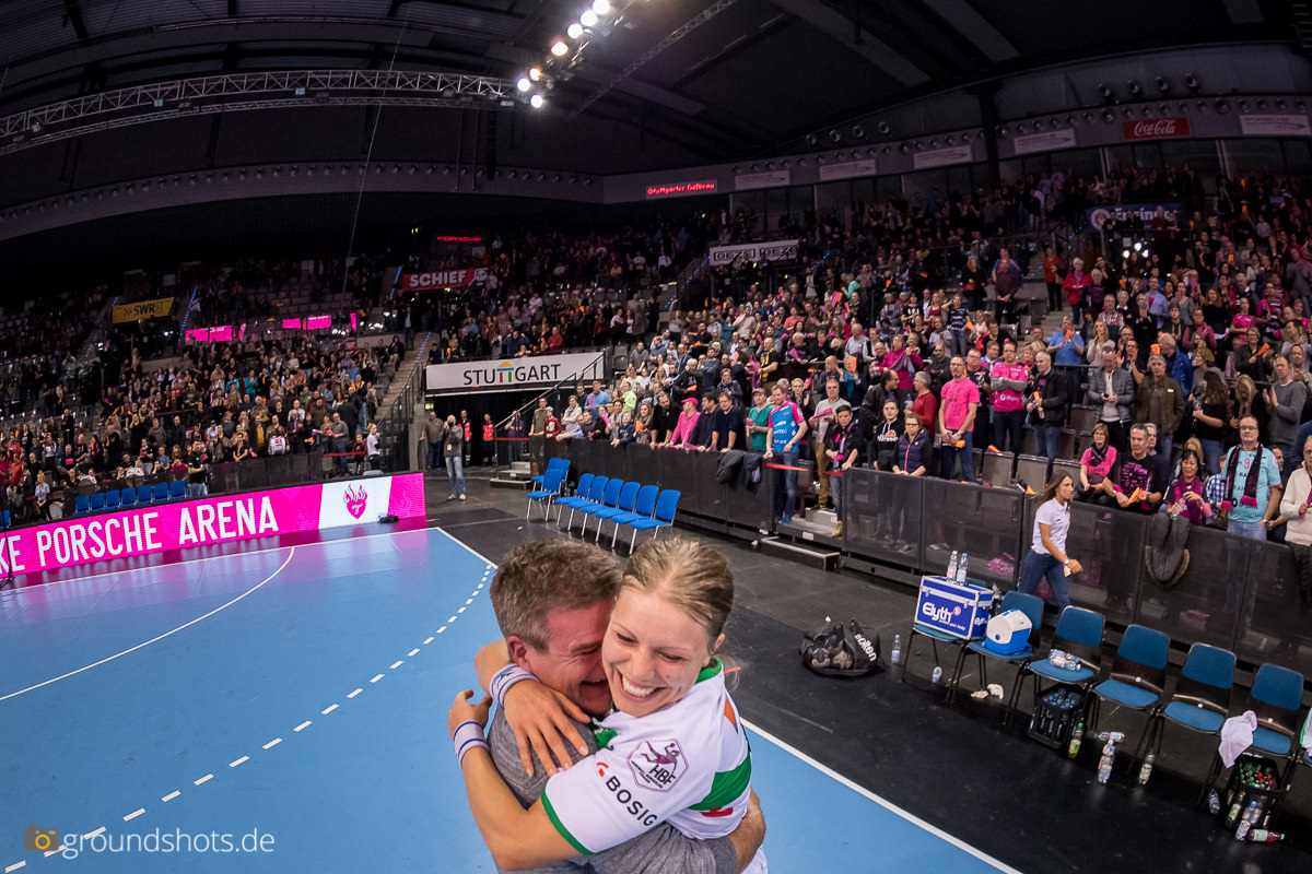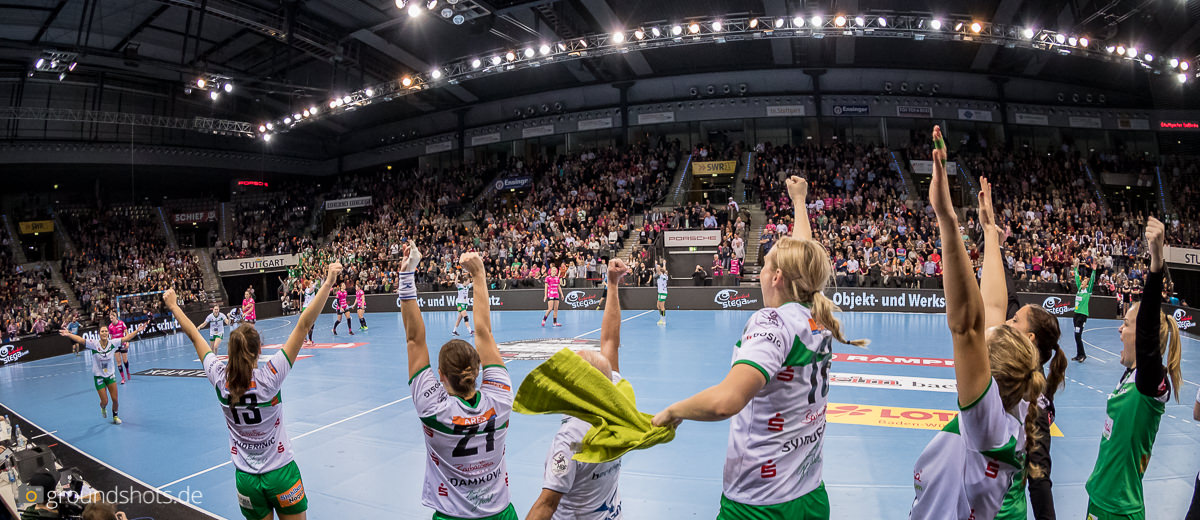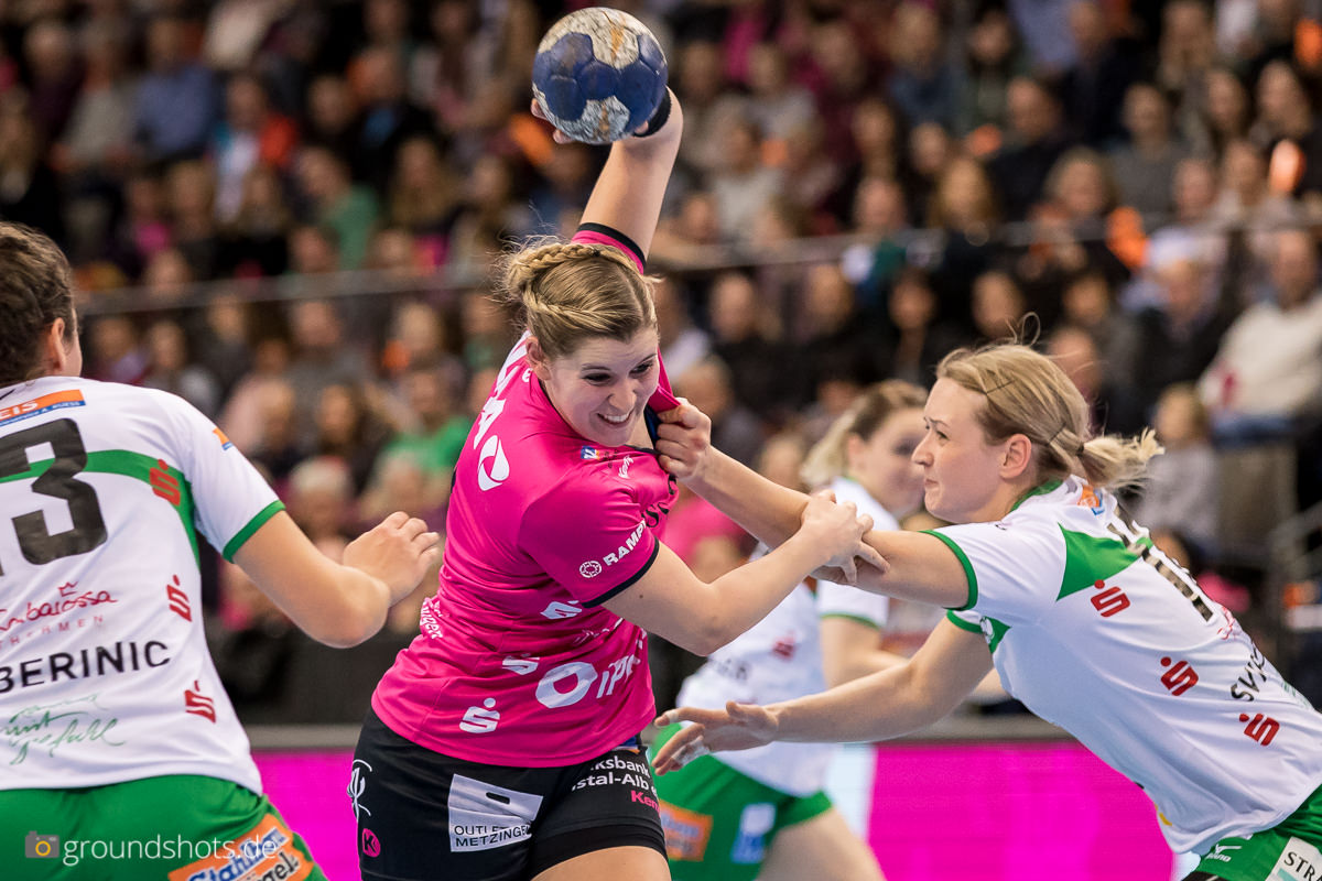 Ab der 50. Spielminute wurde das pinke Fanlager in der Porsche Arena leise – eine Sensation bahnte sich an. Die Frisch Auf Frauen, eingeladen als schmückendes Beiwerk aus der Nachbarschaft beim Versuch, den Zuschauerrekord in der Frauen Handball Bundesliga zu knacken, ergaben sich nicht einfach ihrem gegebenen Schicksal gegen die haushoch favorisierten Gastgeberinnen. Nein, die grün-weissen Underdogs aus Göppingen führten und drohten, die pinke Metzinger Party platzen zu lassen.