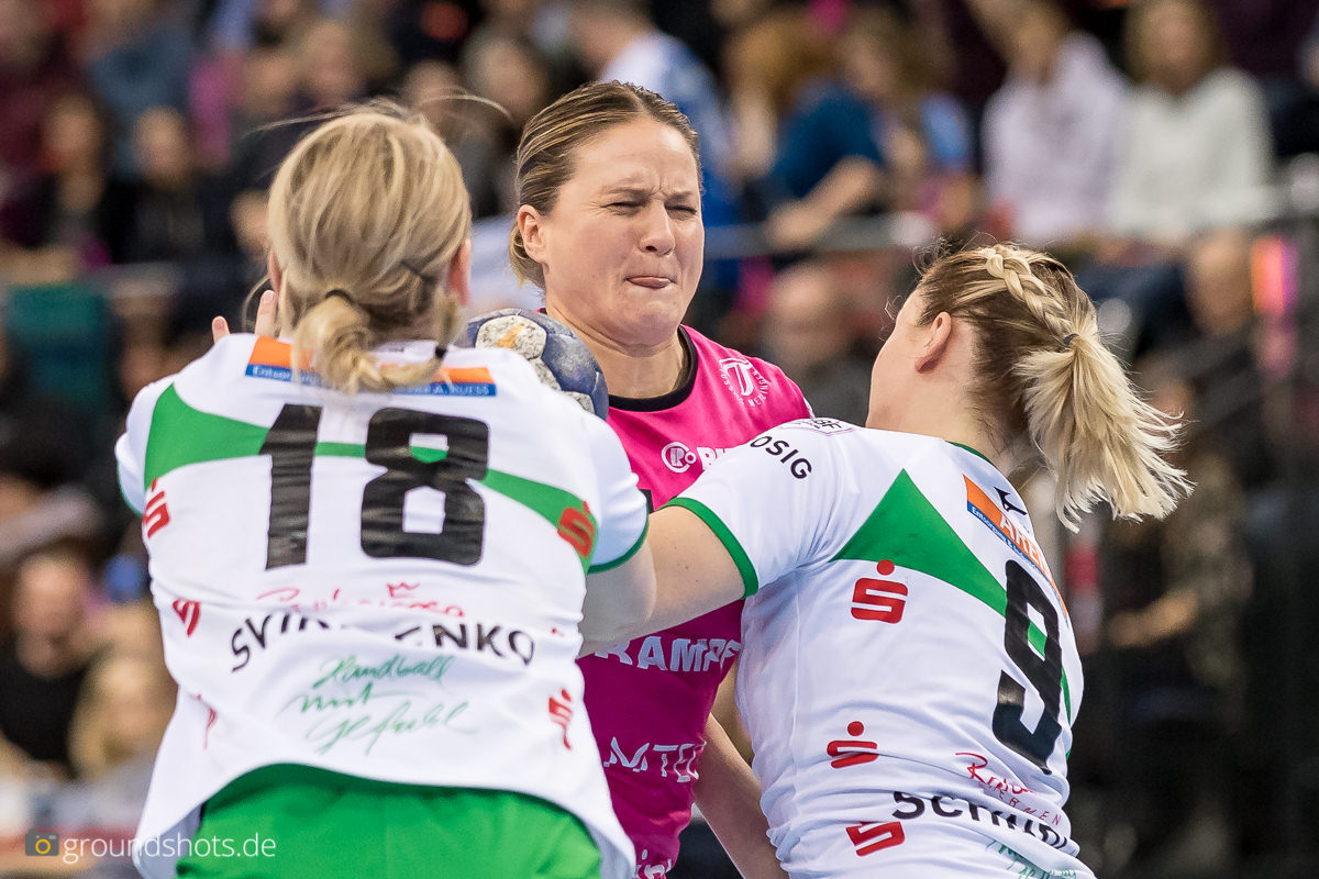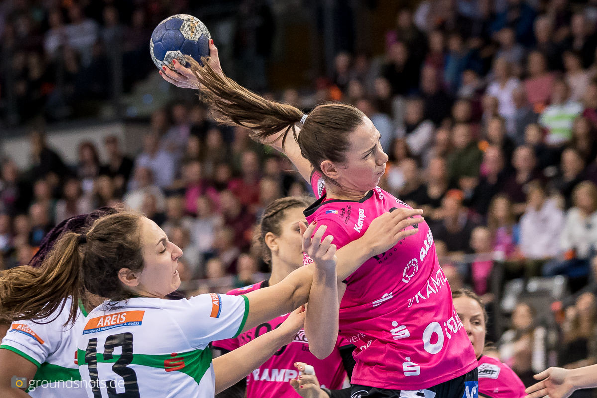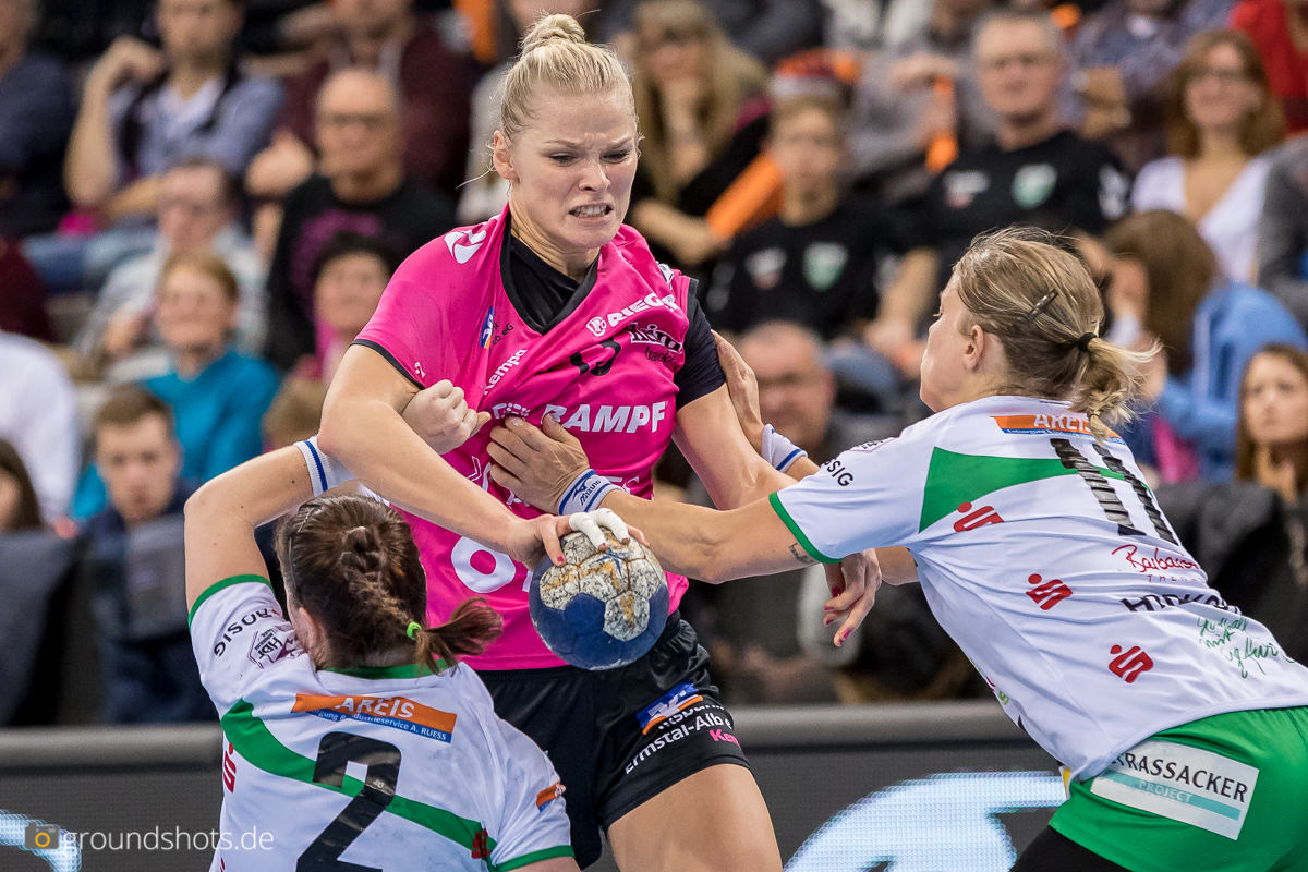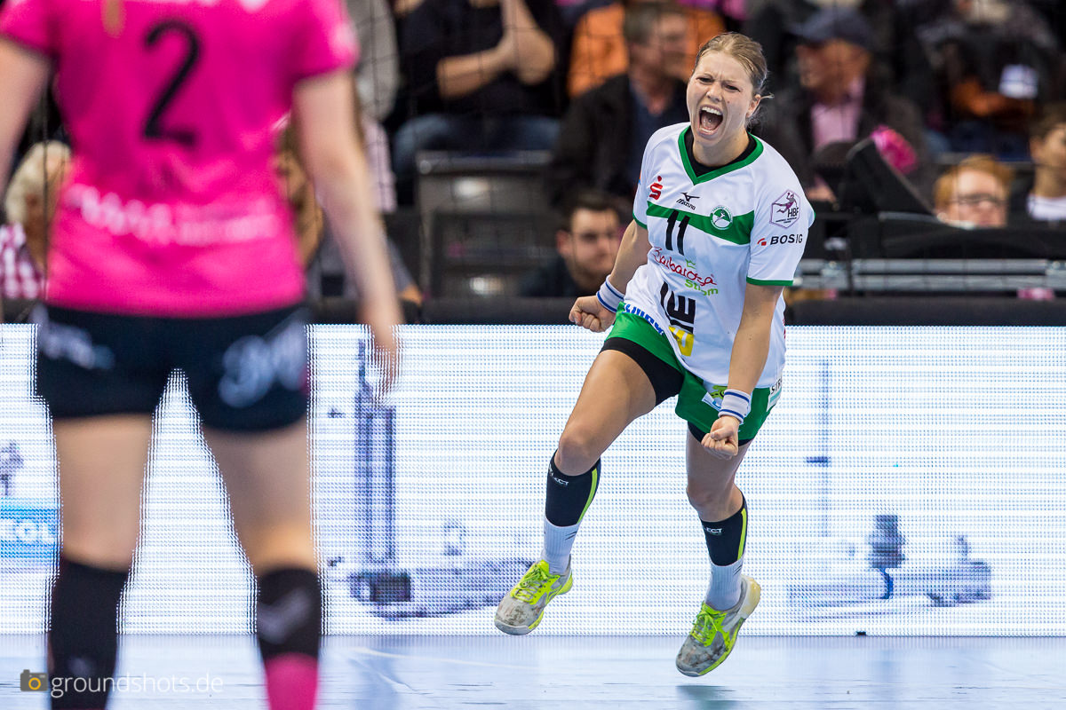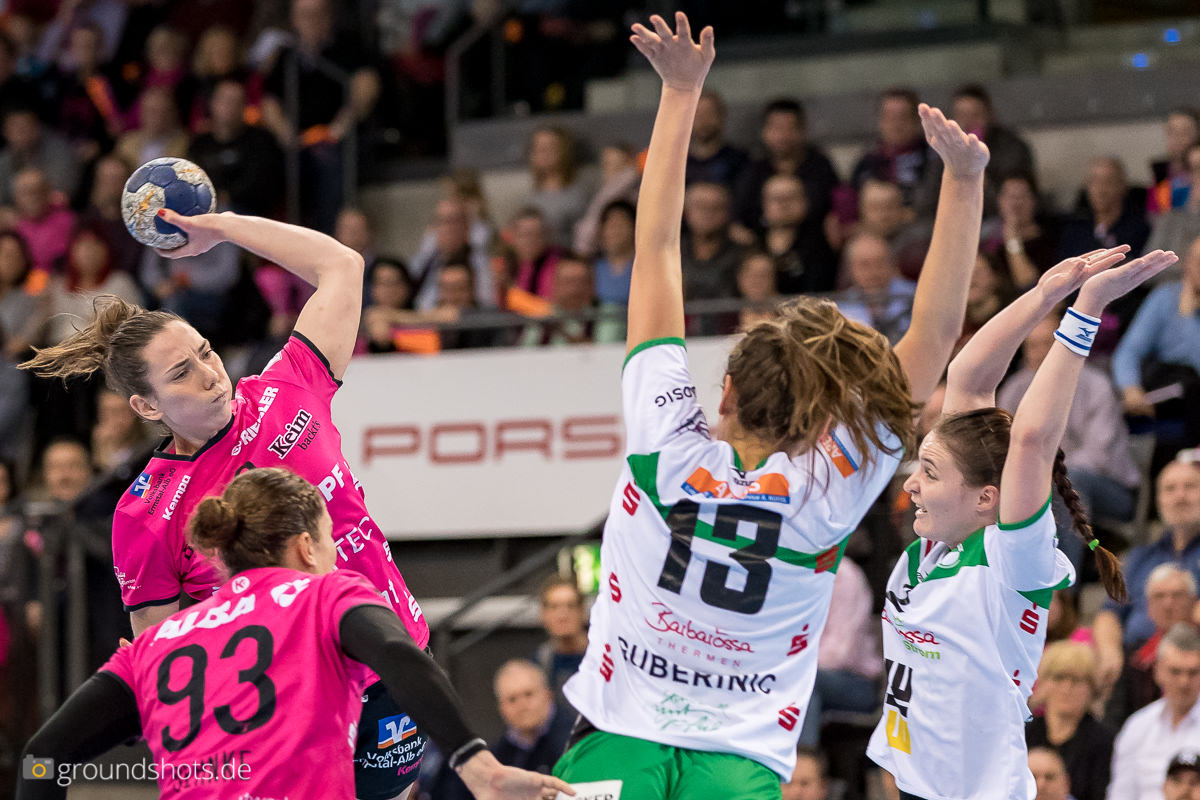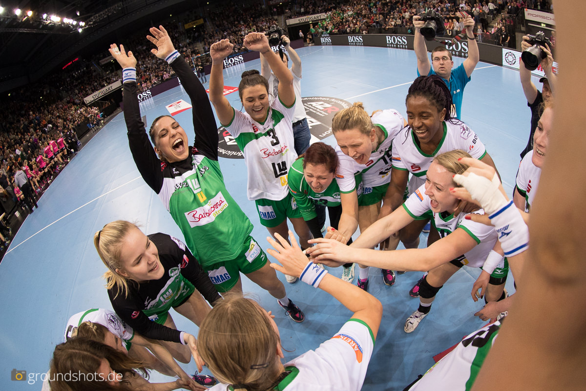 Ab der 50. Spielminute wurde das pinke Fanlager in der Porsche Arena leise – eine Sensation bahnte sich an. Die Frisch Auf Frauen, eingeladen als schmückendes Beiwerk aus der Nachbarschaft beim Versuch, den Zuschauerrekord in der Frauen Handball Bundesliga zu knacken, ergaben sich nicht einfach ihrem gegebenen Schicksal gegen die haushoch favorisierten Gastgeberinnen. Nein, die grün-weissen Underdogs aus Göppingen führten und drohten, die pinke Metzinger Party platzen zu lassen.