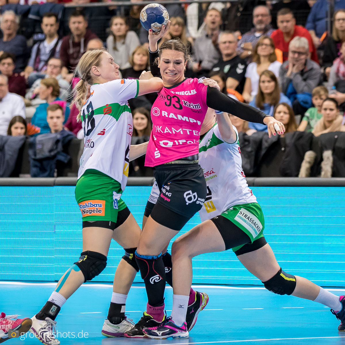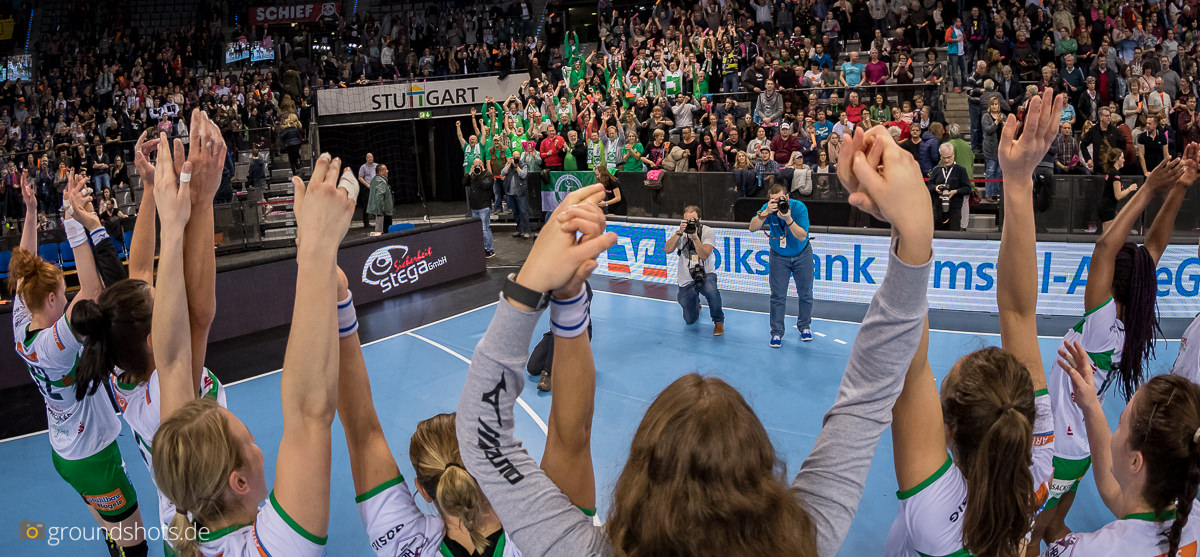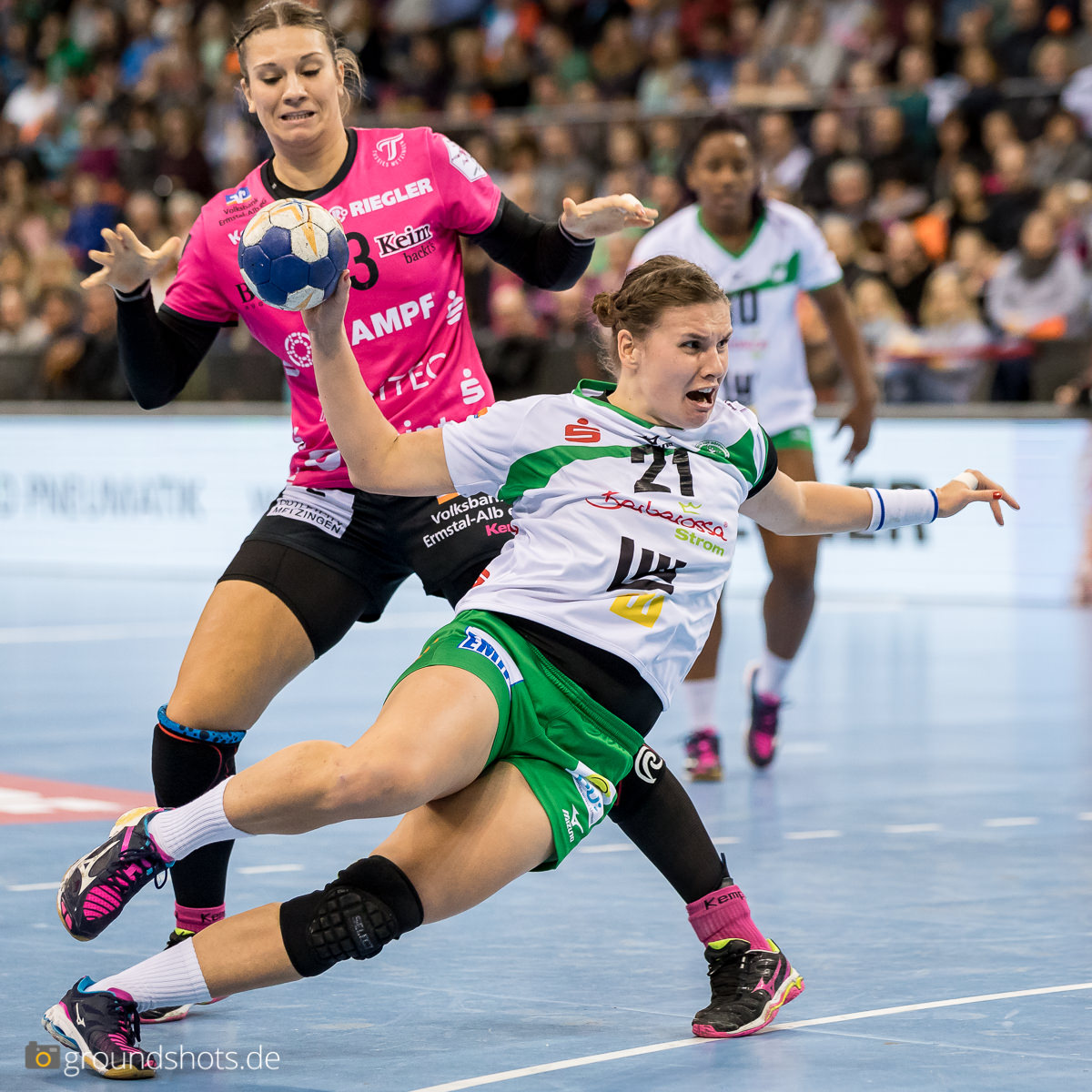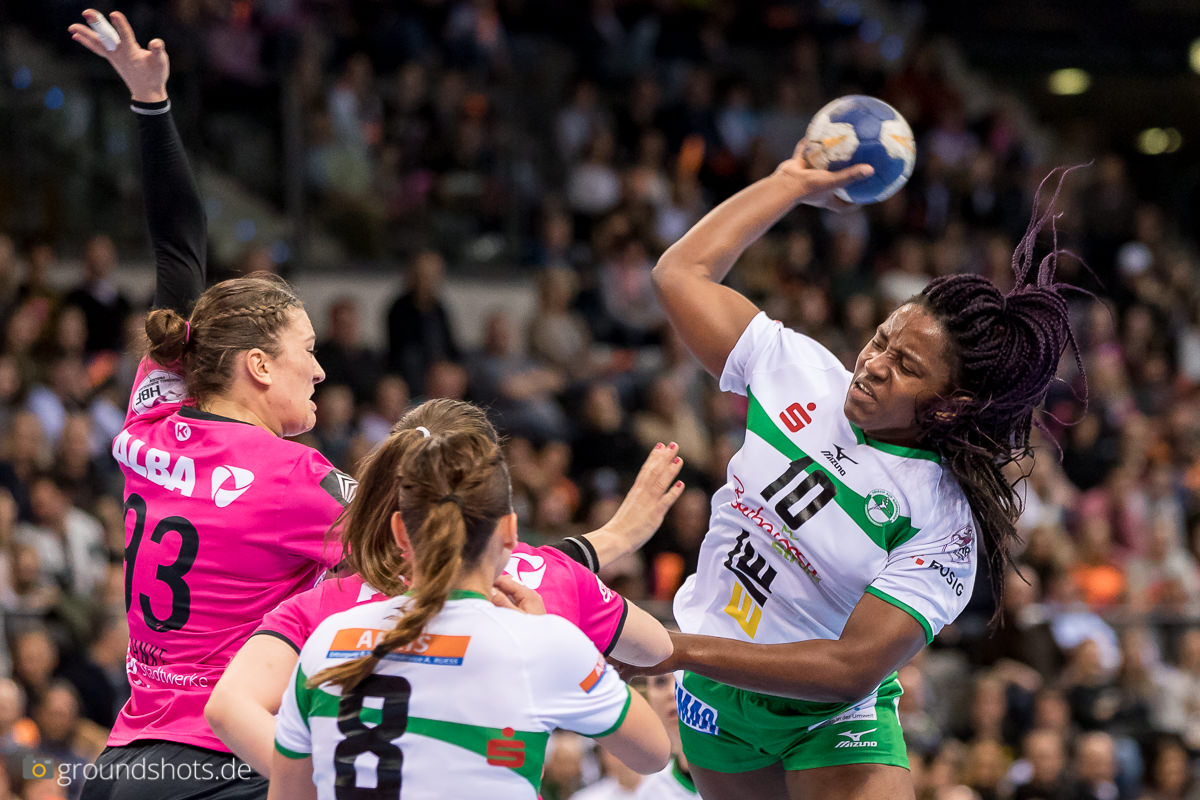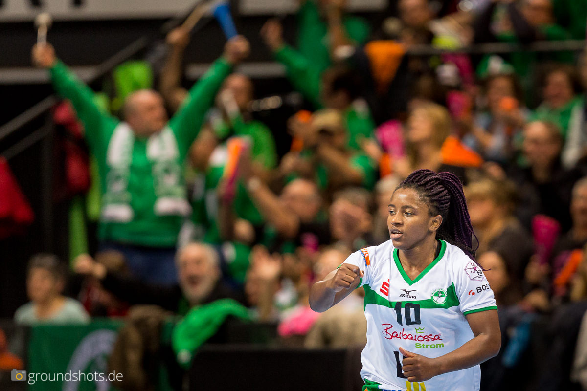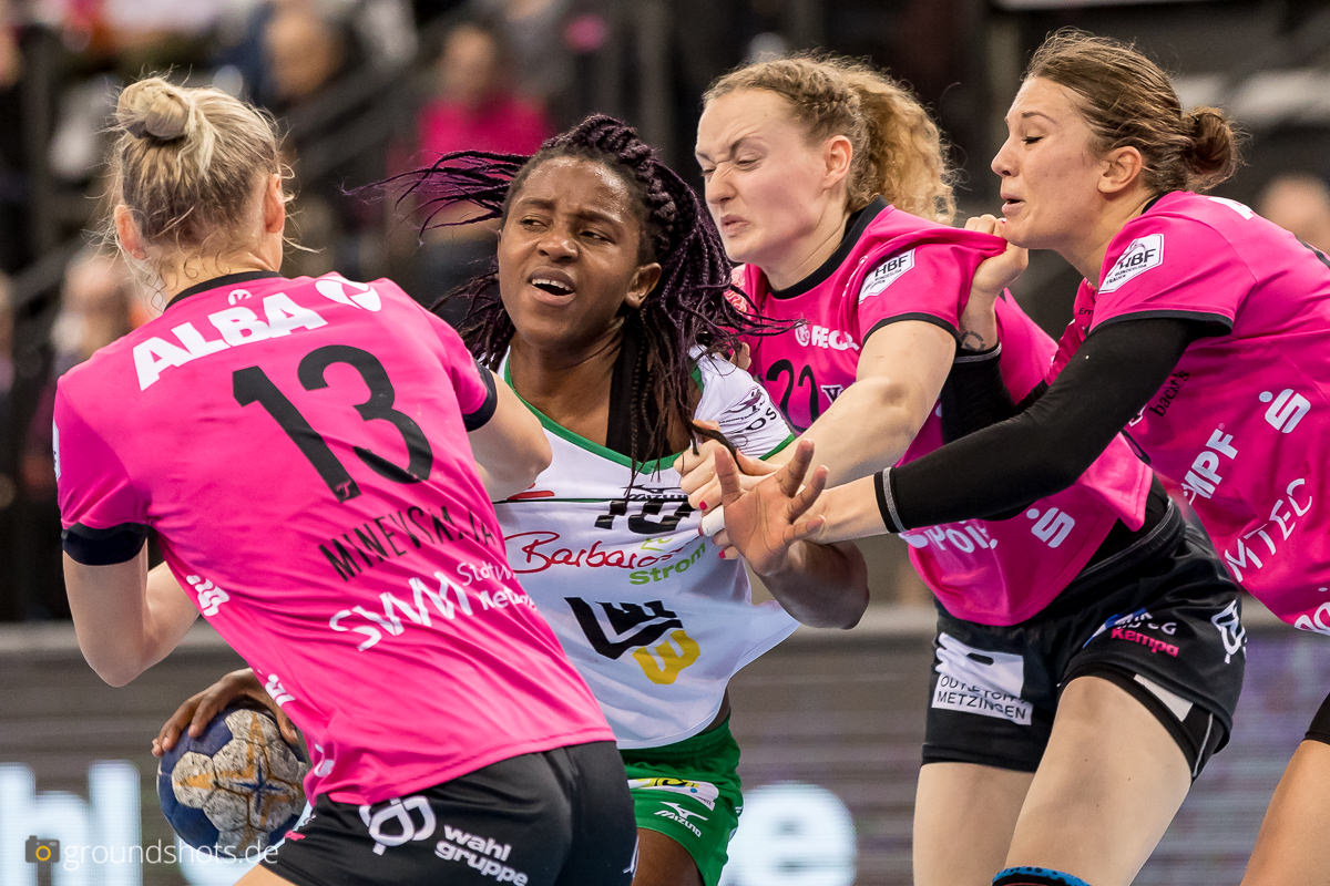Ab der 50. Spielminute wurde das pinke Fanlager in der Porsche Arena leise – eine Sensation bahnte sich an. Die Frisch Auf Frauen, eingeladen als schmückendes Beiwerk aus der Nachbarschaft beim Versuch, den Zuschauerrekord in der Frauen Handball Bundesliga zu knacken, ergaben sich nicht einfach ihrem gegebenen Schicksal gegen die haushoch favorisierten Gastgeberinnen. Nein, die grün-weissen Underdogs aus Göppingen führten und drohten, die pinke Metzinger Party platzen zu lassen.