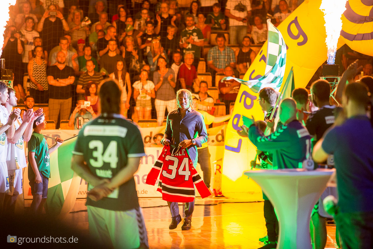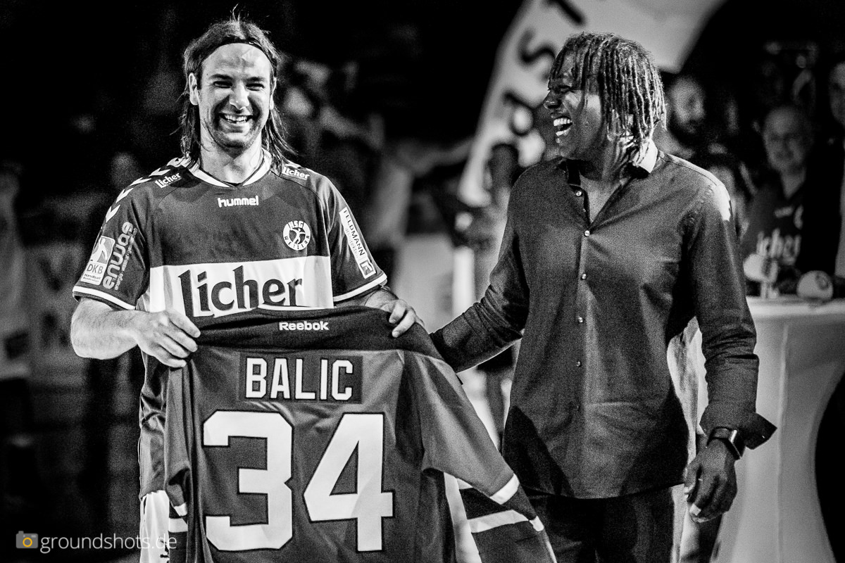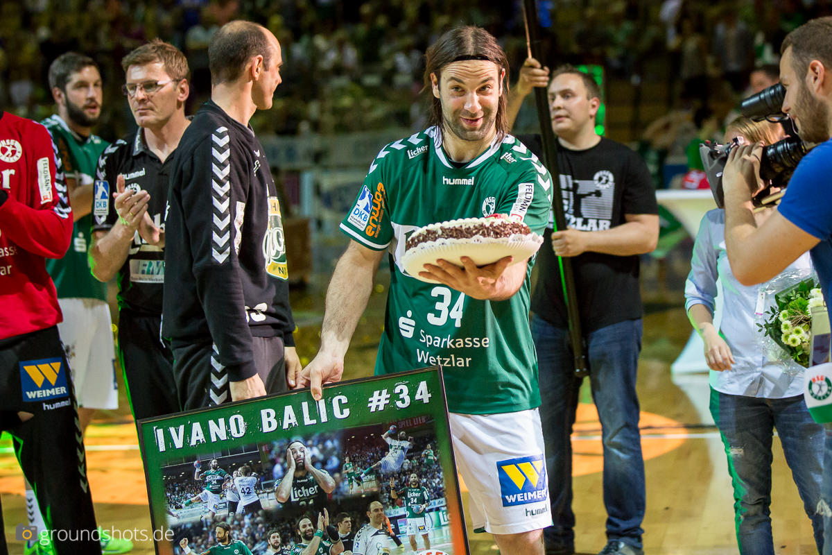Das letzte Saisonspiel zwischen der HSG Wetzlar und Frisch Auf Göppingen geriet zur Nebensache – die lebende Handballlegende Ivano Balic beendete seine aktive Karriere und wurde entsprechend verabschiedet. Ausverkauftes Haus, Unmengen an kroatischen Fans und Medien. Höhepunkt war dann der Auftritt einer weiteren Legende: Jackson Richardson, das Idol von Ivano Balic, war extra gekommen und überreichte ihm ein Trikot seiner Lieblingsmannschaft im Eishockey, den New Jersey Devils.