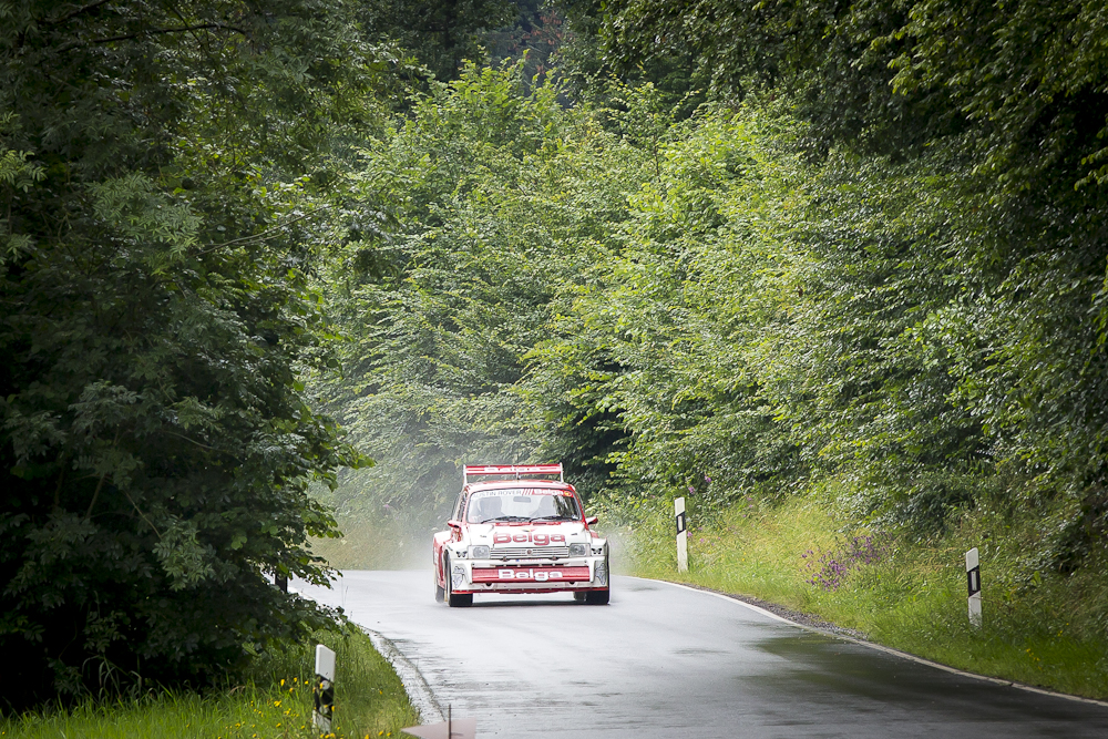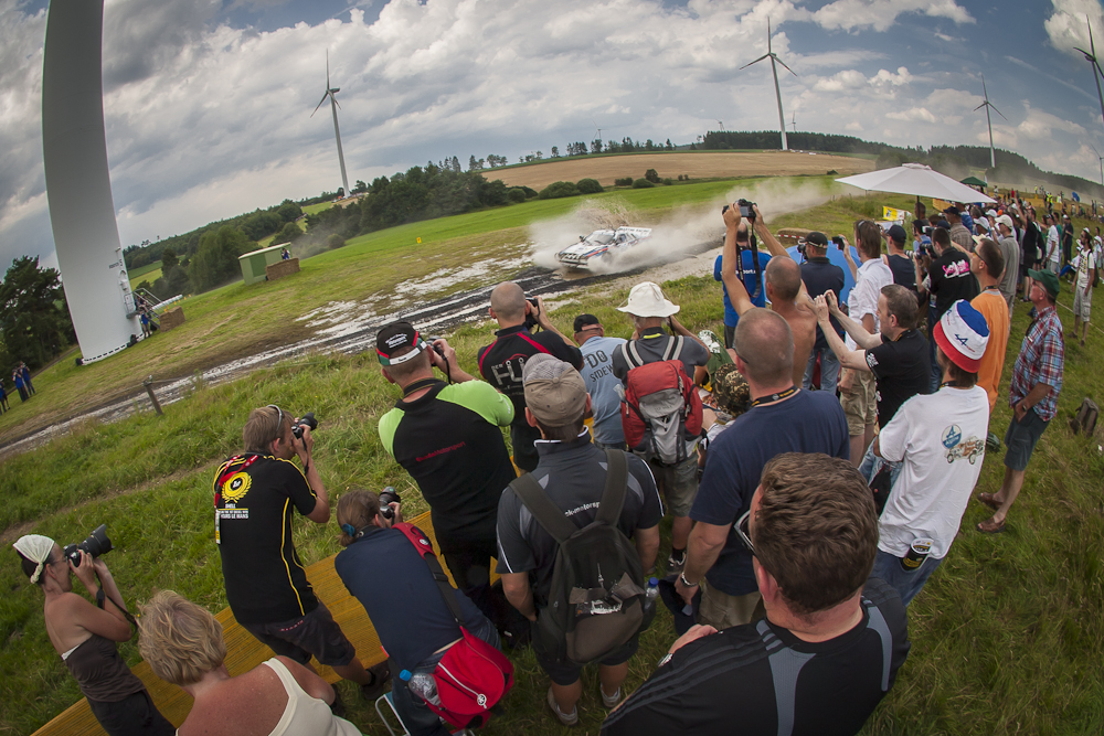Die zweite Auflage des Eifel Rallye Festival wurde vom typischen Eifelwetter begleitet. Nichtsdestotrotz ließen es sich 40.000 (Veranstalerangaben) Rallyebegeisterte nicht nehmen, die Altstars der Szene wie Walter Röhrl oder Stig Blomquist beim Ausreiten von legendären Rallye-Fahrzeugen wie dem Audi Sport Quattro E2 zu beklatschen.