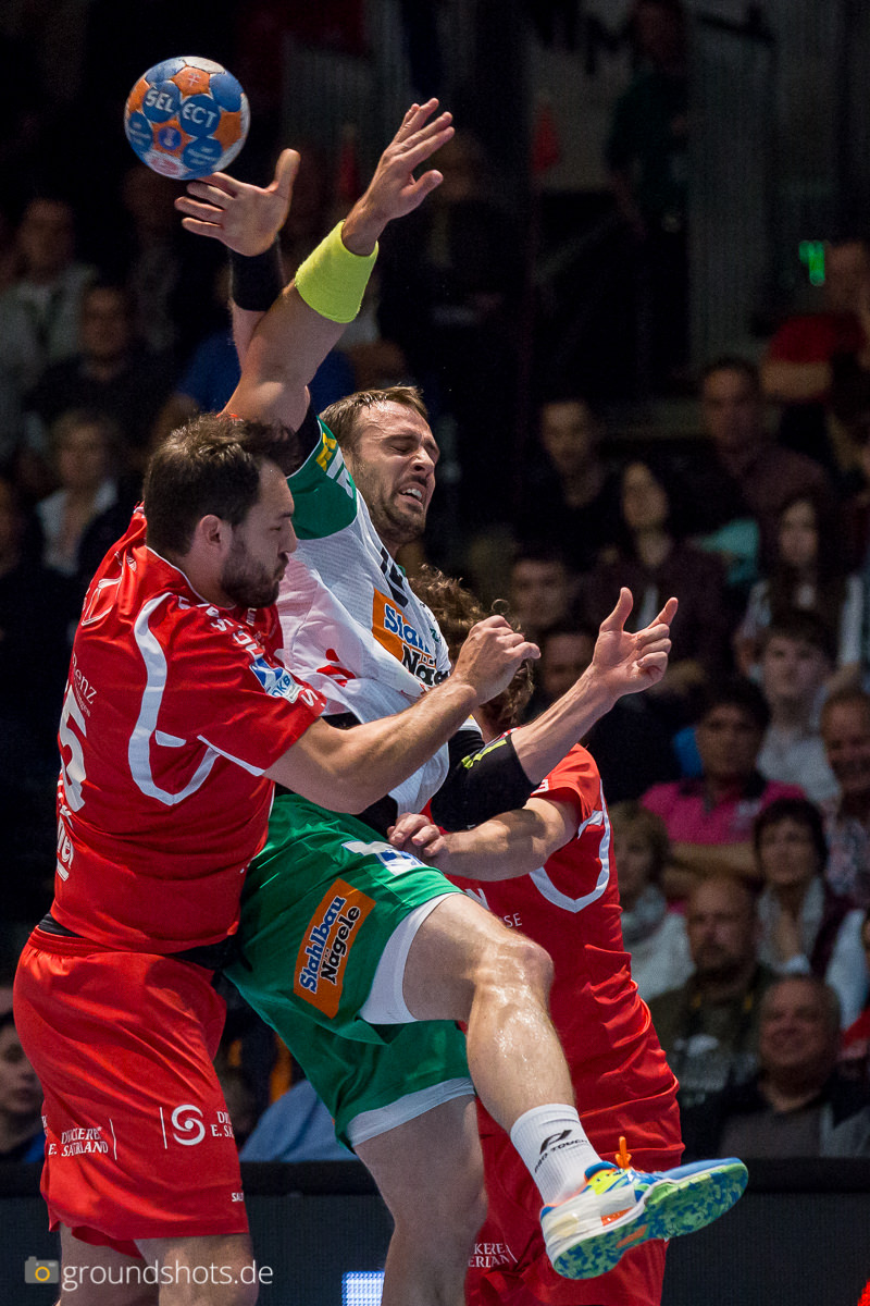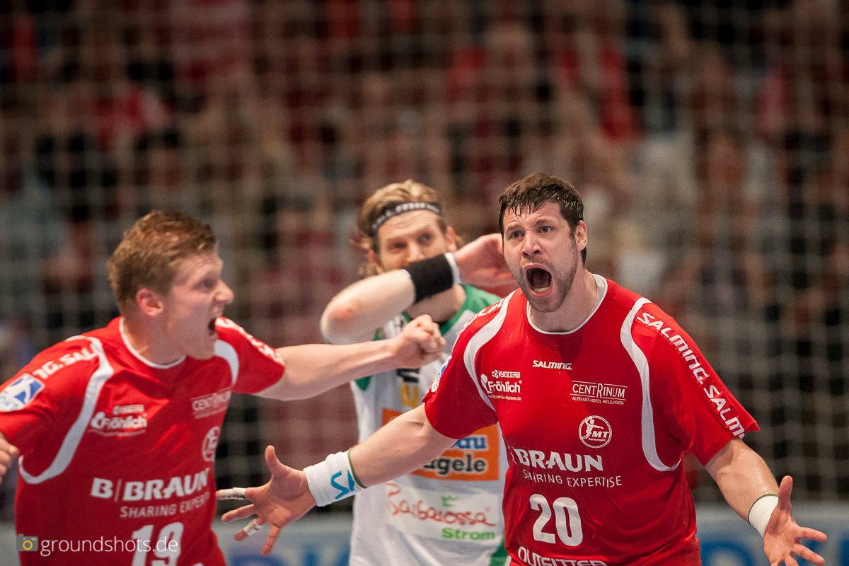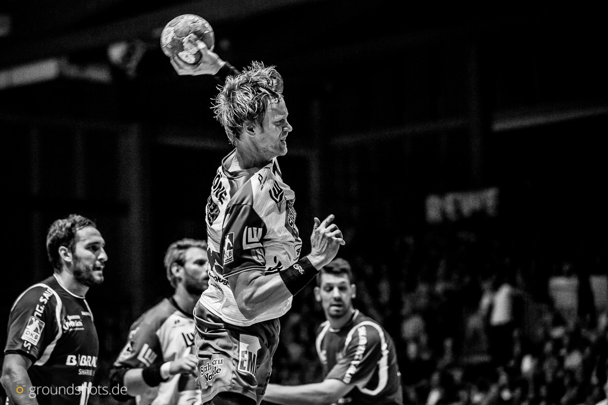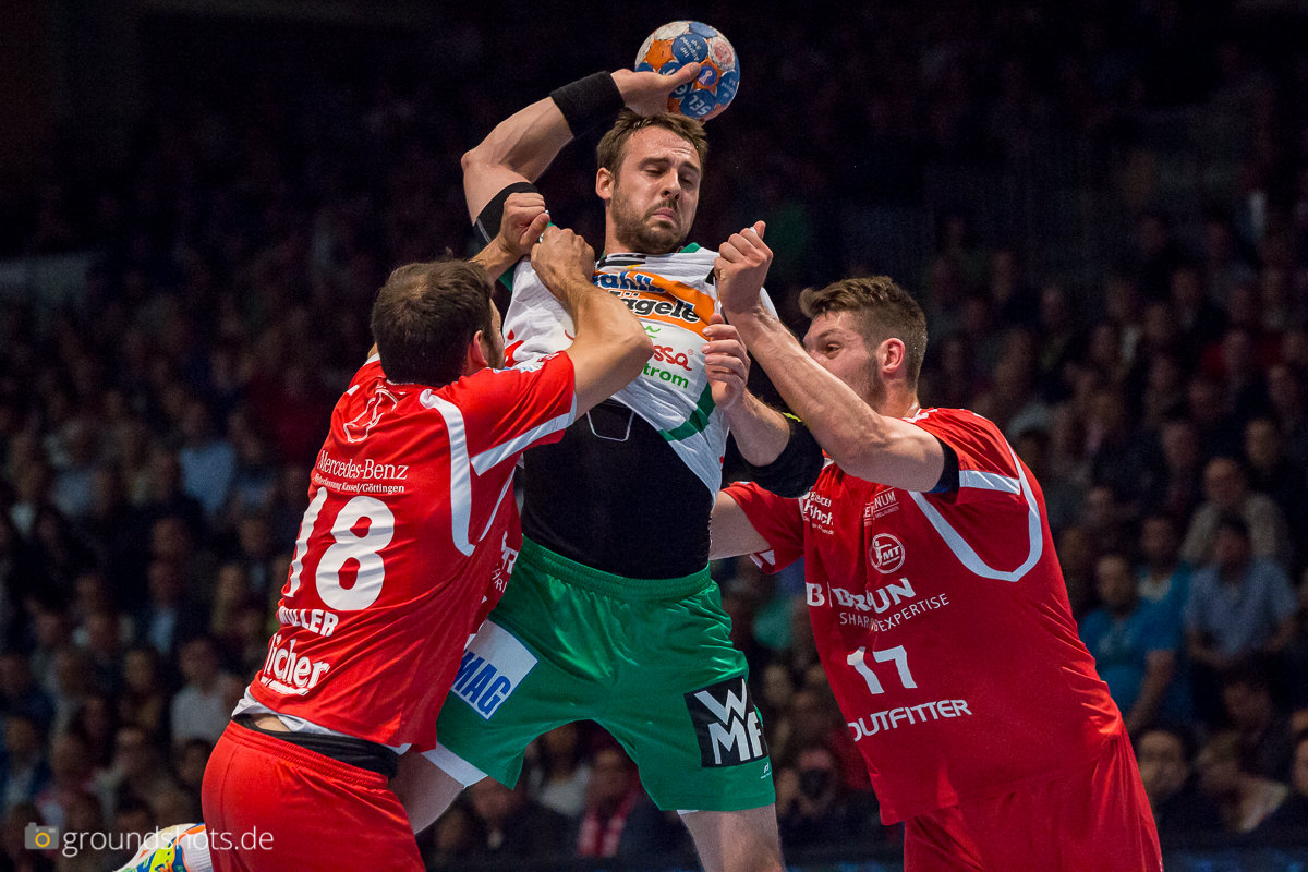 Doch es kam anders. Frisch Auf stand von Anfang an hochaggressiv in der Abwehr. Der Angriffsmotor stotterte zwar ein bißchen, Spielmacher Tim Kneule setzte sich aber ein ums andere Mal durch und führte sein Team zum 4:5. Dann drehte Melsungen, angetrieben vom starken Ex-Göppinger Momir Rnic das Spiel und ging seinerseits mit 11:8 in Führung. Göppingen gab sich jedoch nicht auf und kämpfte sich zur 14:15 Halbzeitführung.