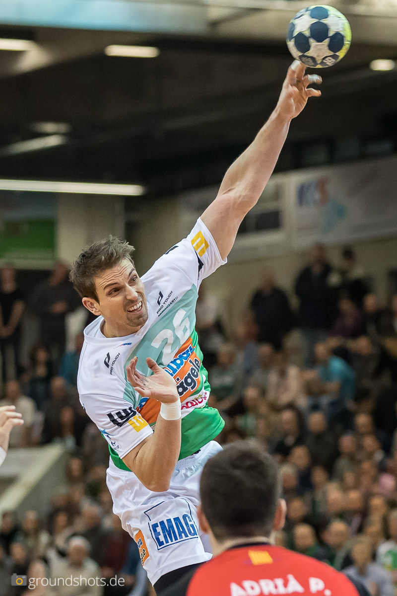 Unterstützt von der Halle kämpfte sich FRISCH AUF! nun Tor für Tor heran, in der 25. Minute gelang dann der Ausgleich zum 10:10. In den folgenden dreißig Minuten waren die Göppinger dann immer kurz davor das Spiel zu drehen, doch immer wieder schlug auch Granollers postwendend zurück.Vier Minuten vor Spielende brachte Adrian Pfahl seine Mannschaft mit 27:25 in Führung doch die aktuelle FRISCH AUF! -Mannschaft wäre nicht sie selbst, würde sie es nicht nocheinmal spannend machen. Zwanzig Sekunden vor dem Schlußpfiff warf Niclas Barud das 29:28, praktisch mit diesem Schlußpfiff vereitelte Torhüter Bastian Rutschmann den Kempaversuch von Granollers‘ Mamadou Gassama.