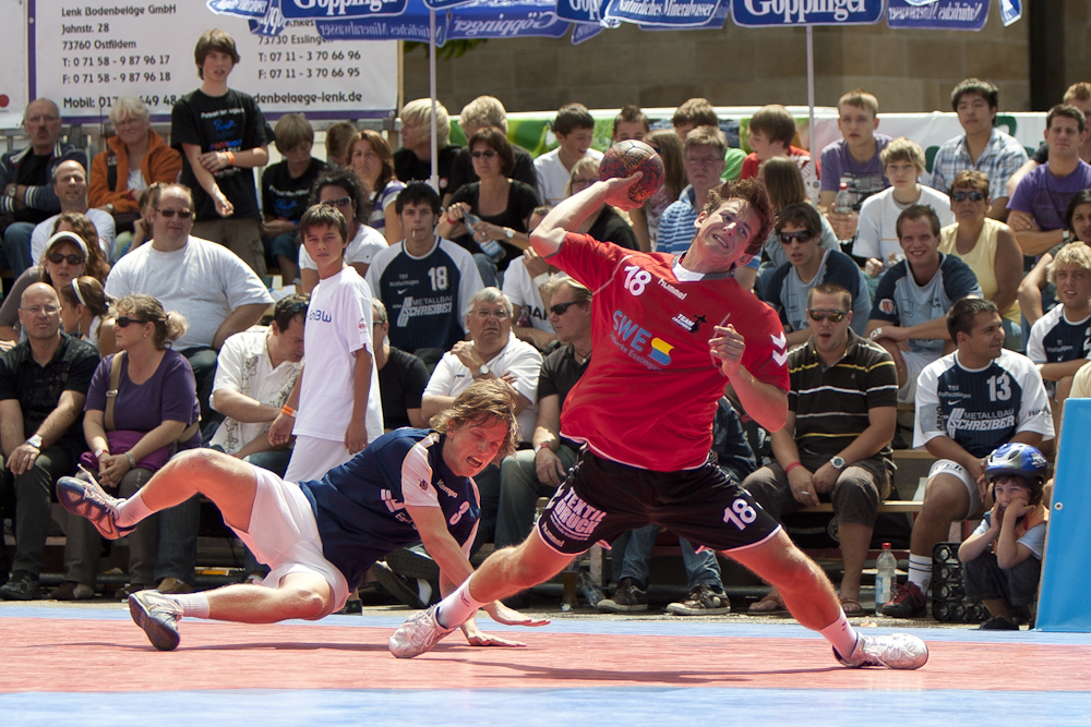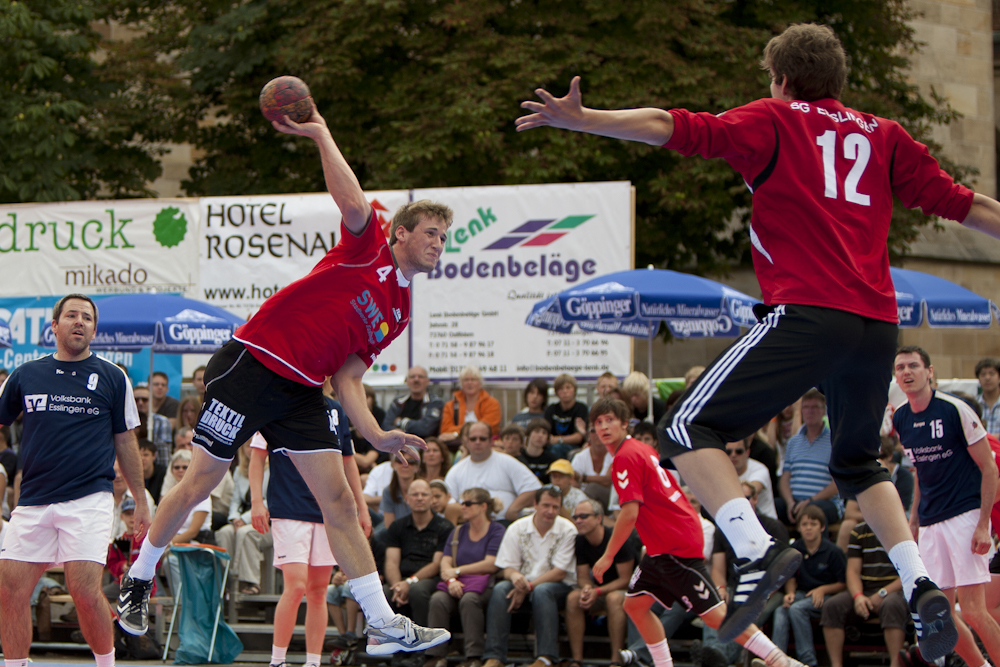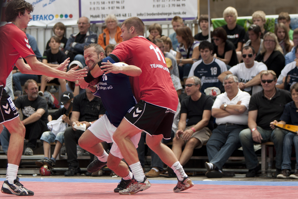 Heute Mittag war ich auf dem Marktplatzturnier in Esslingen. Wieder (wie letztes Jahr) bei herrlichem Wetter. Die Sonne hat nur einen Nachteil: der rote Boden strahlt die Spieler in einem schönen Schweinchenrosa an …..