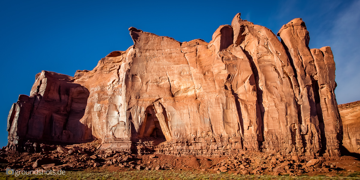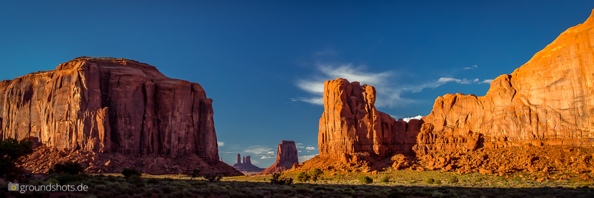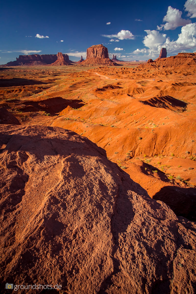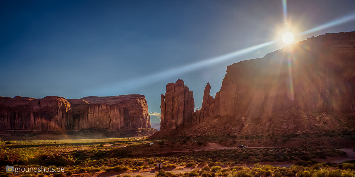 Das Monument Valley – in Deutschland durch den Marloboro rauchenden Cowboy der durch die Buttes (so heißen diese frei stehenden Felsblöcke) reitet und sich, in den Sonnenuntergang reitend, einen Glimmstengel anzündet.