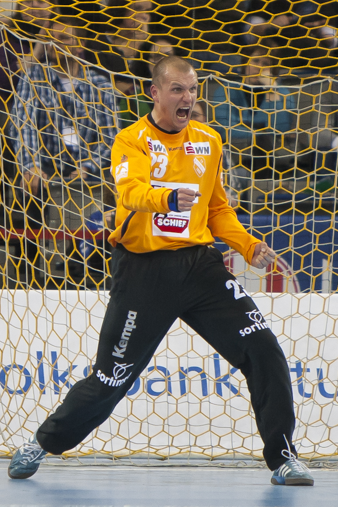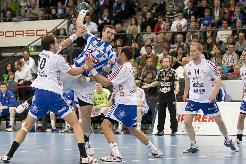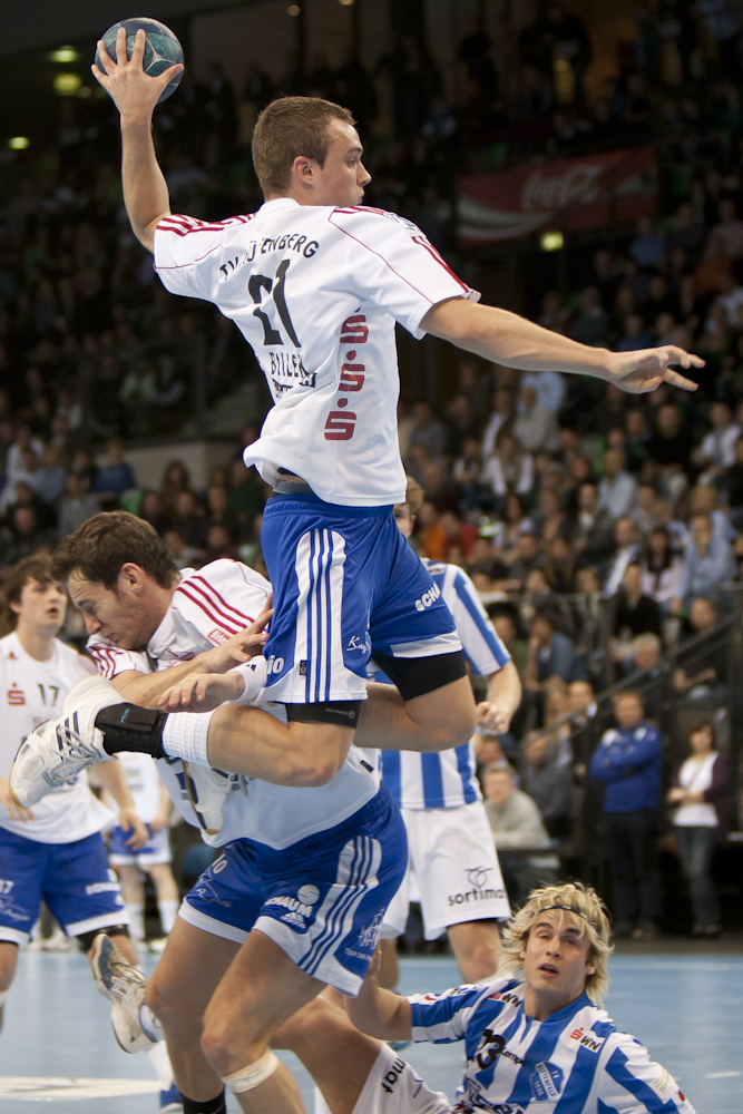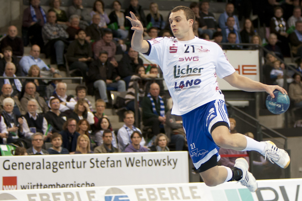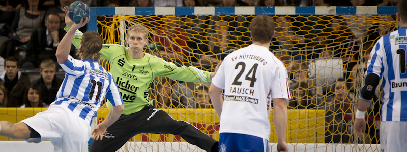 Spitzenspiel in der zweiten Handball-Bundesliga zwischen dem TV Bittenfeld und dem TV Hüttenberg. Vor 5300 Zuschauern gewinnen die Hausherren durch einen Treffer von Simon Baumgarten zwanzig Sekunden vor Schluß.