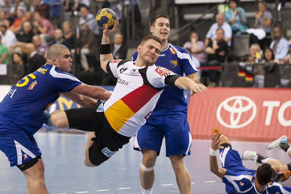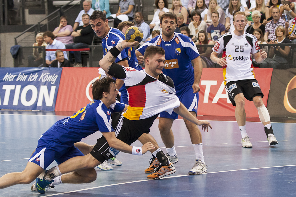 Überraschend gut startete die Deutsche Nationalmannschaft bei der Qualifikation für die Handball Weltmeisterschaft in das Spiel gegen Bosnien und lag zur Halbzeit bereits mit 18:7 in Führung. In der zweiten Hälfte taten sich die Männer von Bundestrainer Martin Heuberger dann etwas schwerer, nehmen jedoch mit dem 36:24 ein gutes Polster mit zum Rückspiel in Sarajevo.